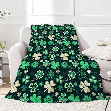 A6261, Flannel Throw Blanket Lucky Shamrocks Leaves Green